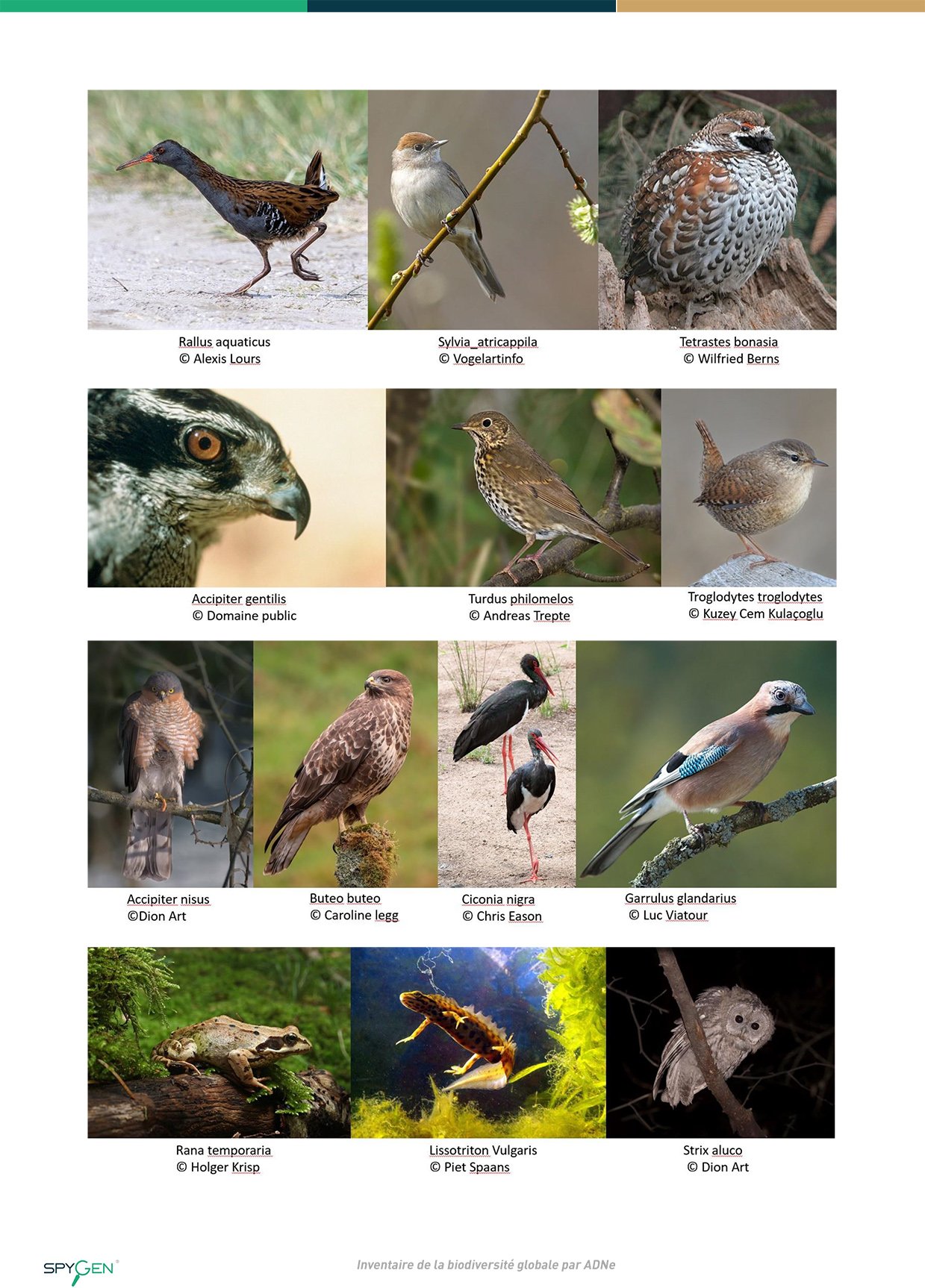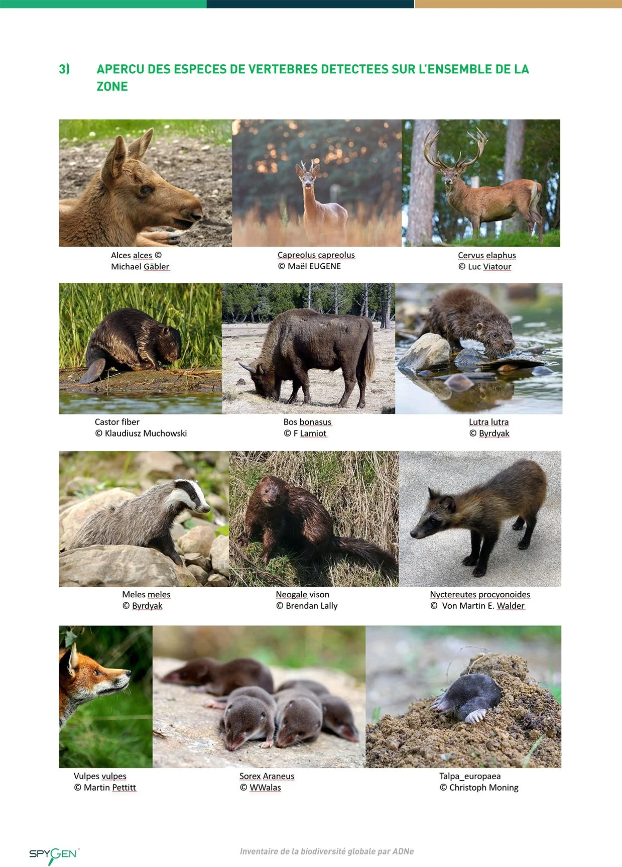 Aperçu de quelques espèces de vertébrés détectées sur l’ensemble de la zone (extrait du rapport de synthèse de l’étude)